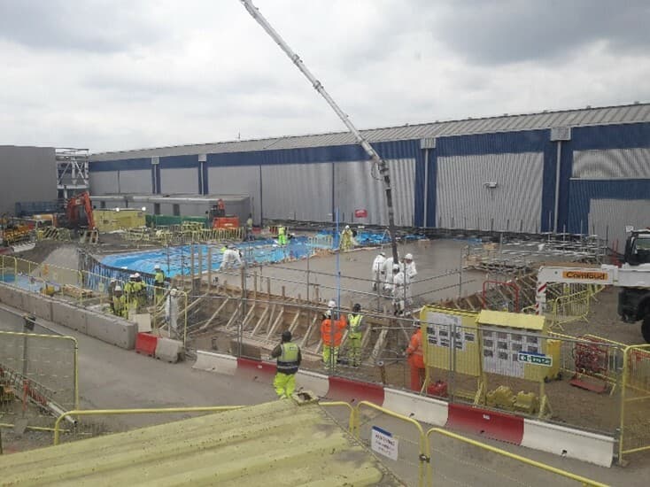 We designed and constructed the foundations for the goods-in facility and the temporary immigration facility, which included piling and the construction of associated pile caps and beams. We also realigned the existing crash barrier and planter to widen the entrance to the yard and we installed a new permanent security fence (SR2 type fencing) underneath the DLR viaduct.